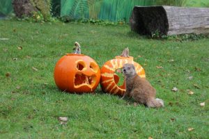 So kreiert man Interesse. Die wilden Artgenossen von „Guste“ sind zwar noch nicht bedroht, sie bewohnen aber einen bedrohten Lebensraum: die Savanne, die immer leerer wird. Zudem zeigt sie wie unterschiedlich Mitglieder einer Familie im Tierreich aussehen können und so begreifen die Besucher viel besser, was der sehr sperrige und kompliziert anmutende Begriff Biodiversität eigentlich bedeutet. Deshalb ist es wunderbar, wenn moderne Zoos und Aquarien eben genau diese biologische Vielfalt zeigen. Halloween kann somit als tolle Gelegenheit genutzt werden, auch darauf nochmal aufmerksam zu machen. Wenn das Kürbis-Gesicht dann beim Anblick der Fuchsmanguste scheinbar vor Schreck entgleist und „Guste“ dann ganz unschuldig in Richtung Kamera schaut, so hat dies aber zugleich auch eine komische, eine unterhaltende Komponente. Das ist wichtig, denn Unterhaltung verankert Bildung in der Erinnerung.