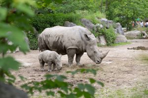 Breitmaulnashorn mit Nachwuchs im Salzburger Zoo (2015) | Foto: Kre Stefan, Lizenz: CC BY-SA 4.0