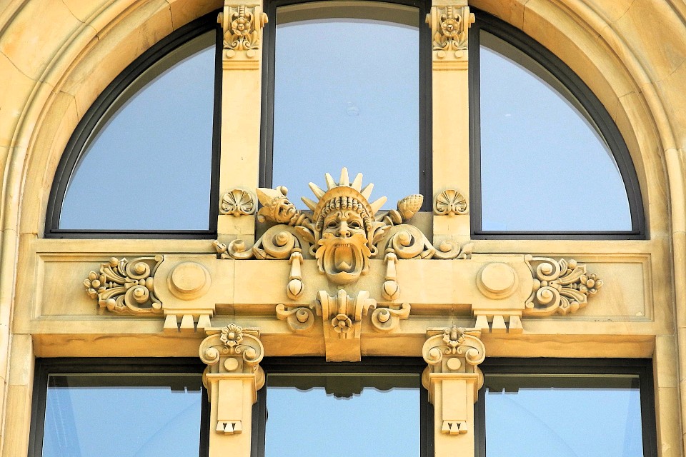 Mascaron-Relief am Nordwest-Turm der Historischen Stadthalle Wuppertal | Foto: Im Fokus, Lizenz: CC BY-SA 4.0