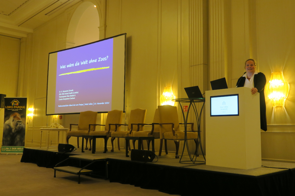 Dr. K. Alexandra Dörnath bei ihrem Impulsvortrag im Rahmen des Parlamentarischen Abends des Loro Parque unter Schirmherrschaft von Olav Gutting im Hotel Adlon in Berlin | Foto: Dr. habil. Joachim Scholz