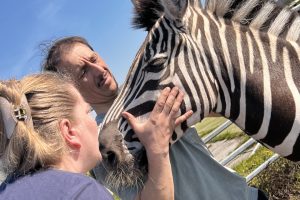 So ging sie etwa beispielhaft auf die Cortisol-Messungen bei Löwen (Circus Krone) und Elefanten (Elefantenhof Platschow) durch den Verhaltensbiologen Dr. Immanuel Birmelin, der ebenfalls Beiratsmitglied von zoos.media ist, und ihre eigenen Messungen beim Schimpansen (Circus Belly) ein. Ebenso sprach sie darüber, dass der Auftritt in der Manege ohnehin nur einen kleinen Teil des Alltags der Tiere im Circus ausmache. In dem Zusammenhang kam sie auch darauf zu sprechen, welche guten Möglichkeiten sie – dank dem Training der Tiere – als Tierärztin hat, die Tiere zu untersuchen. Exemplarisch zeigte sie Bilder, auf denen sie adulte Exemplare von Giraffe, Zebra und Tiger im Freikontakt ohne jegliche Sedation examinierte.
